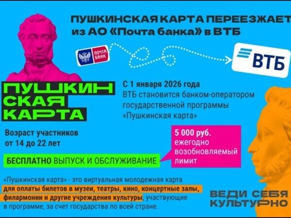 Читать далее🔊Внимание!🔊 Пушкинская карта переезжает в банк ВТБ. ❗С 1 января 2026 года ВТБ становится банком-оператором государственной программы «Пушкинская карта».