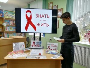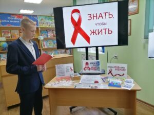 В рамках этого дня в библиотеке проведена беседа — диалог «STOP СПИД: знать, чтобы жить!». В ходе которой ребята были проинформированы о том, что такое ВИЧ – инфекция. Узнали, как она передается и проявляется. Так же уяснили, как же можно защитить себя от этого коварного вируса, если соблюдать ряд правил.