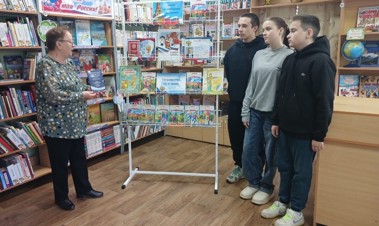 Библиотекарь напомнила ребятам, что Конституция — это основной закон страны, в котором записаны главные права и обязанности граждан. Дети узнали, как создавалась Конституция РФ и что она была принята всенародным голосованием 12 декабря 1993 года. Ребята познакомились с тем, какие права имеет каждый человек, включая ребёнка: право на жизнь, образование, отдых, медицинскую помощь, защиту и др.