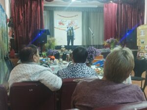 В адрес людей старшего поколения прозвучало много тёплых слов и пожеланий. За чашкой чая пенсионеры делились своими воспоминаниями, пели любимые частушки, песни, читали стихи и танцевали, самые активные были приглашены на сцену.