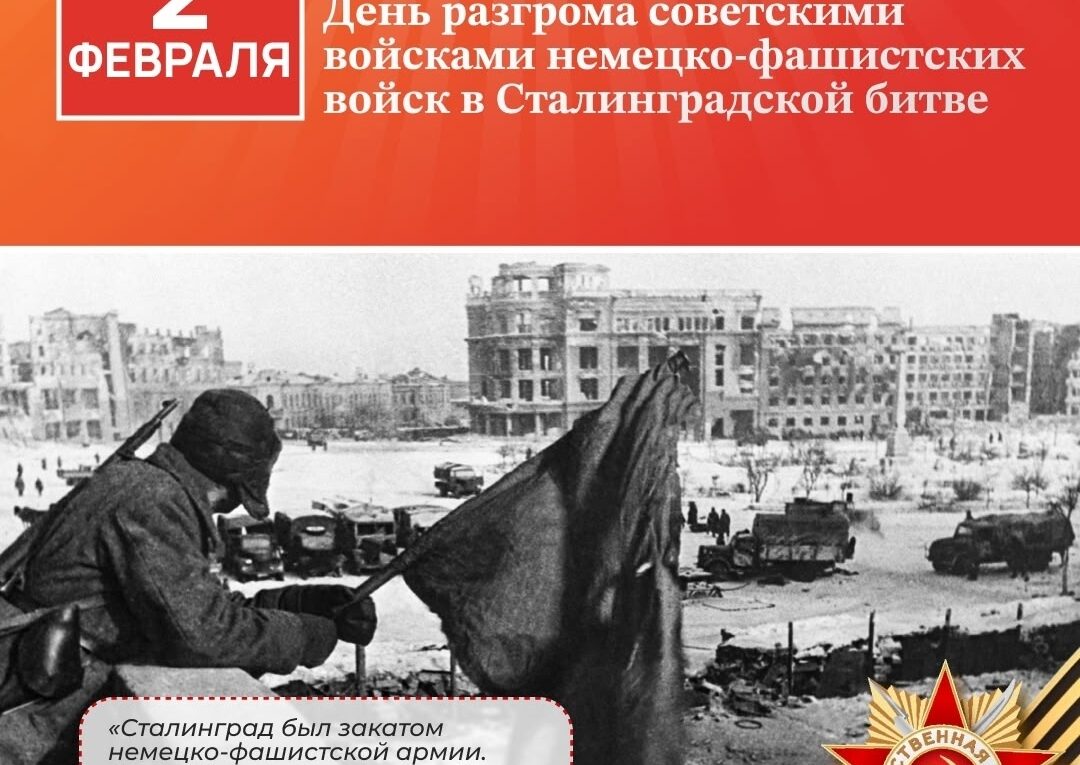 🔥 2 февраля в России отмечают День воинской славы, посвященный разгрому советскими войсками немецко-фашистских войск в Сталинградской битве. Многие историки считают Сталинградскую битву самой жестокой и кровопролитной в истории. Она началась 17 июля 1942 года и продолжалась 200 дней, охватив территорию около 100 тысяч квадратных километров.