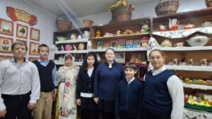 Дети шагнули в воссозданную русскую избу, где каждый уголок дышал историей. Гостей встретили домотканые половики, кружевные салфетки, вышитые рушники с замысловатыми узорами. Кровать с подзором, старинная посуда, рубель для глажки белья — эти предметы, знакомые многим лишь по книгам, здесь можно было рассмотреть вблизи, потрогать и даже попробовать использовать