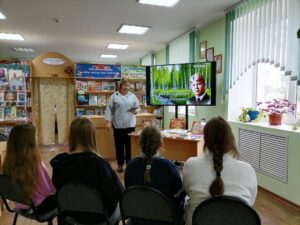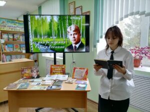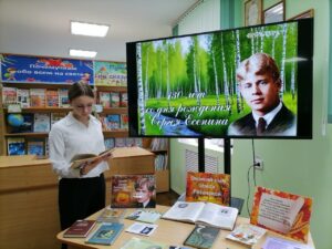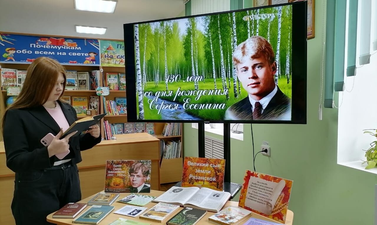 📕📗📘В честь юбилейной даты в библиотеке прошёл поэтический калейдоскоп «Живи и пой моя строка». Зав. детской библиотекой познакомила ребят с жизнью и творчеством Сергея Александровича. Дети узнали о месте рождения Сергея Есенина, о его семье, о первых шагах в литературе. Вниманию присутствующих представлена книжная выставка «Великий сын земли Рязанской». Ребята прочли лирические строки его стихотворений: «Письмо матери», «Заметался пожар голубой», «Край родной!, «Гой ты, Русь, моя родная».